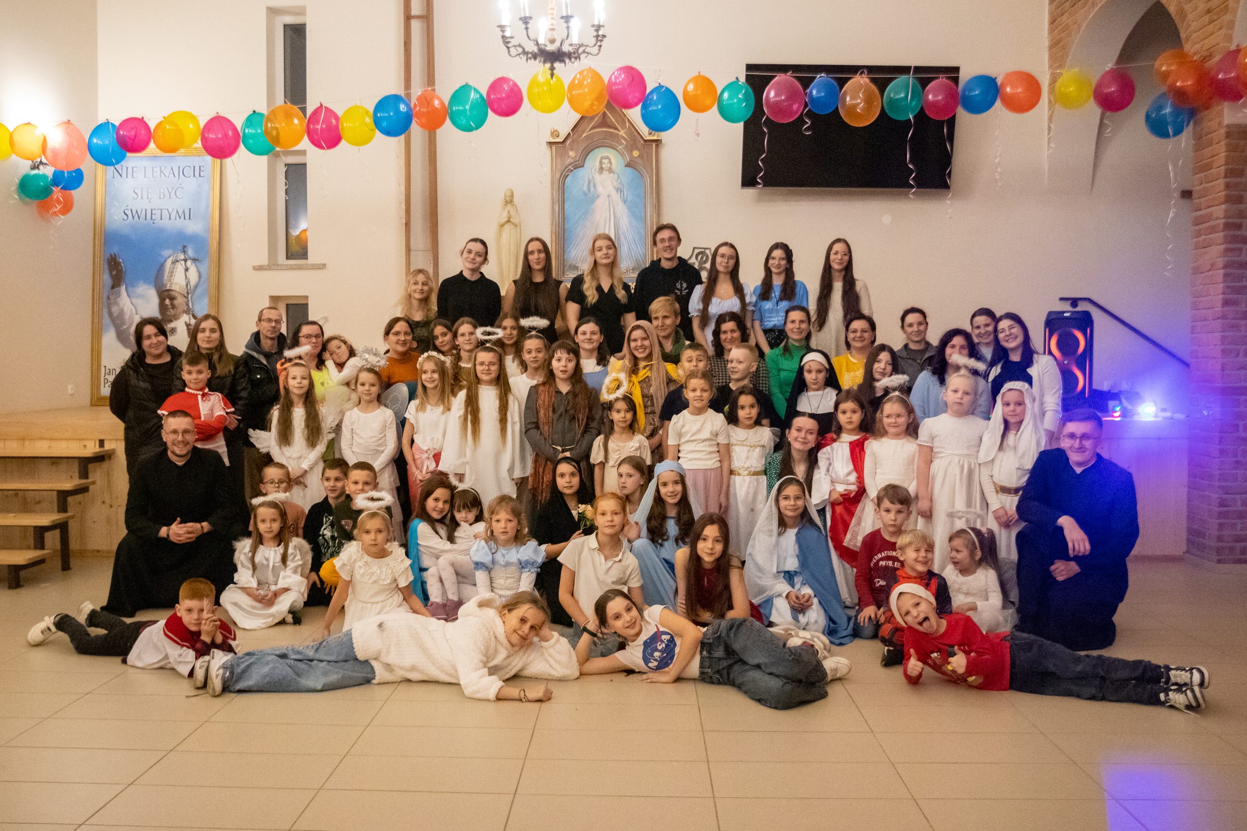 Dzieci przebrane za swoich ulubionych świętych i aniołów bawiły się wspaniale przy muzyce, konkursach i wspólnych zabawach. Nie zabrakło też słodkiego poczęstunku i wielu uśmiechów.