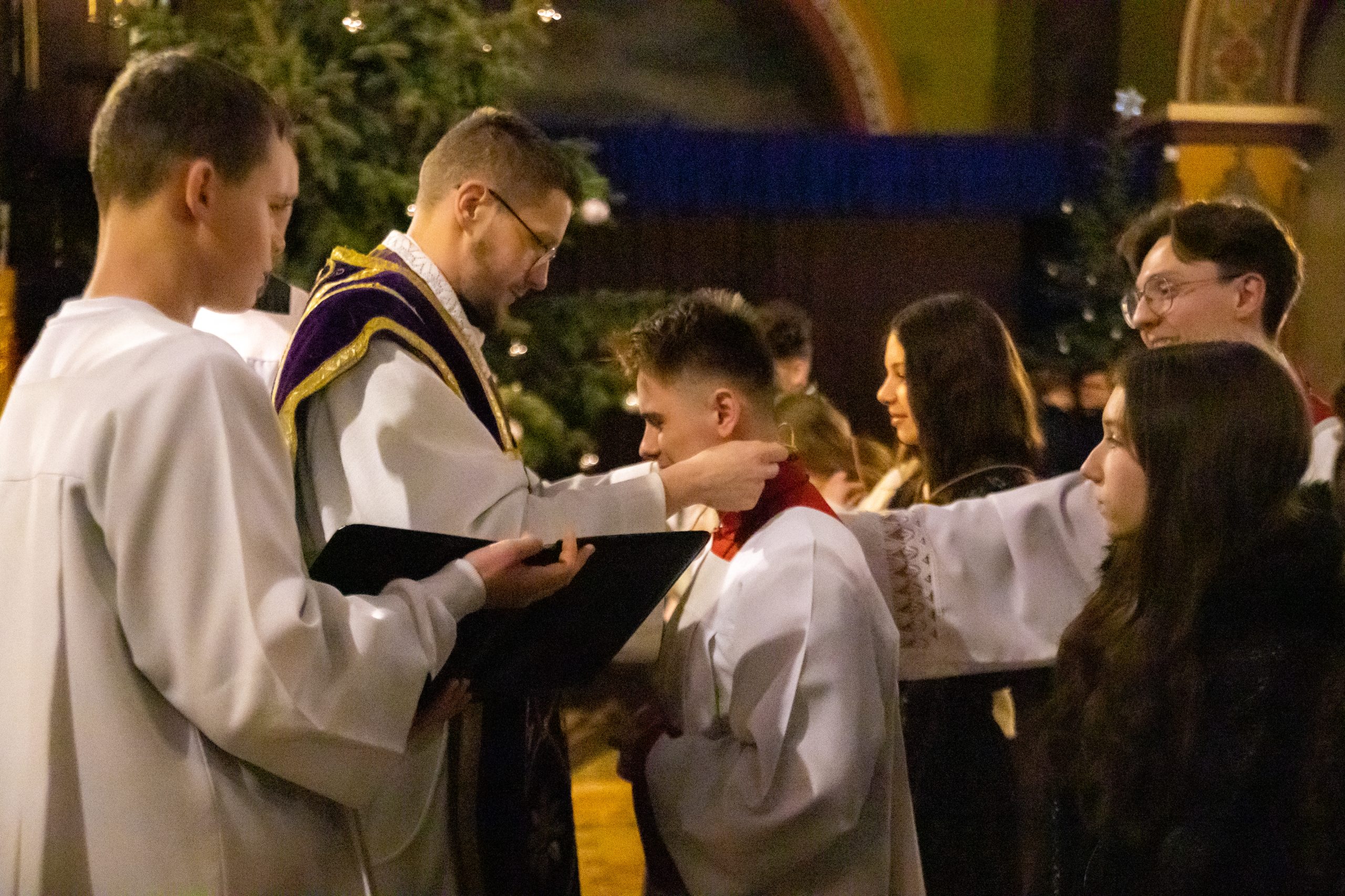 Foski zostały wręczone przez opiekuna naszej wspólnoty, ks. Mateusza Surę, który towarzyszy młodym w ich wzrastaniu w wierze i odpowiedzialności za Kościół.