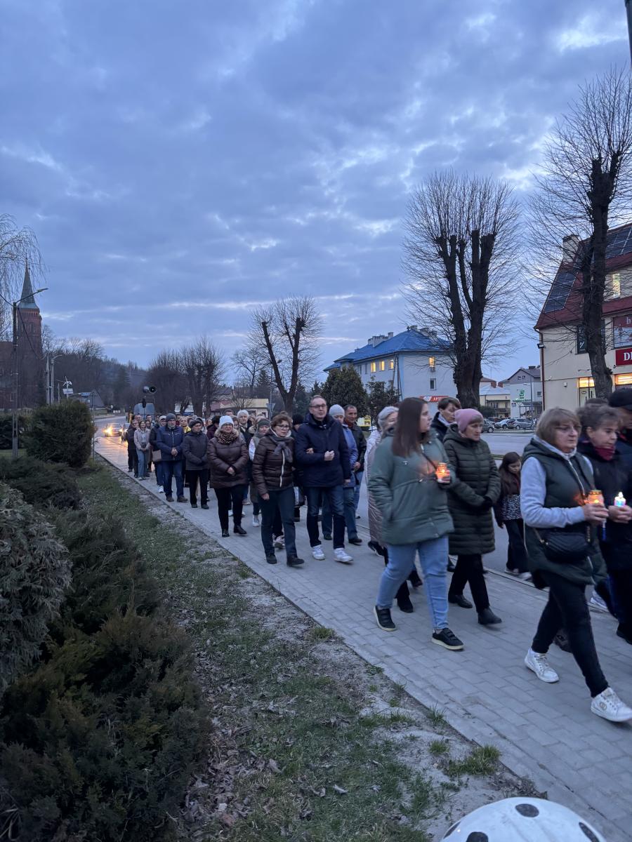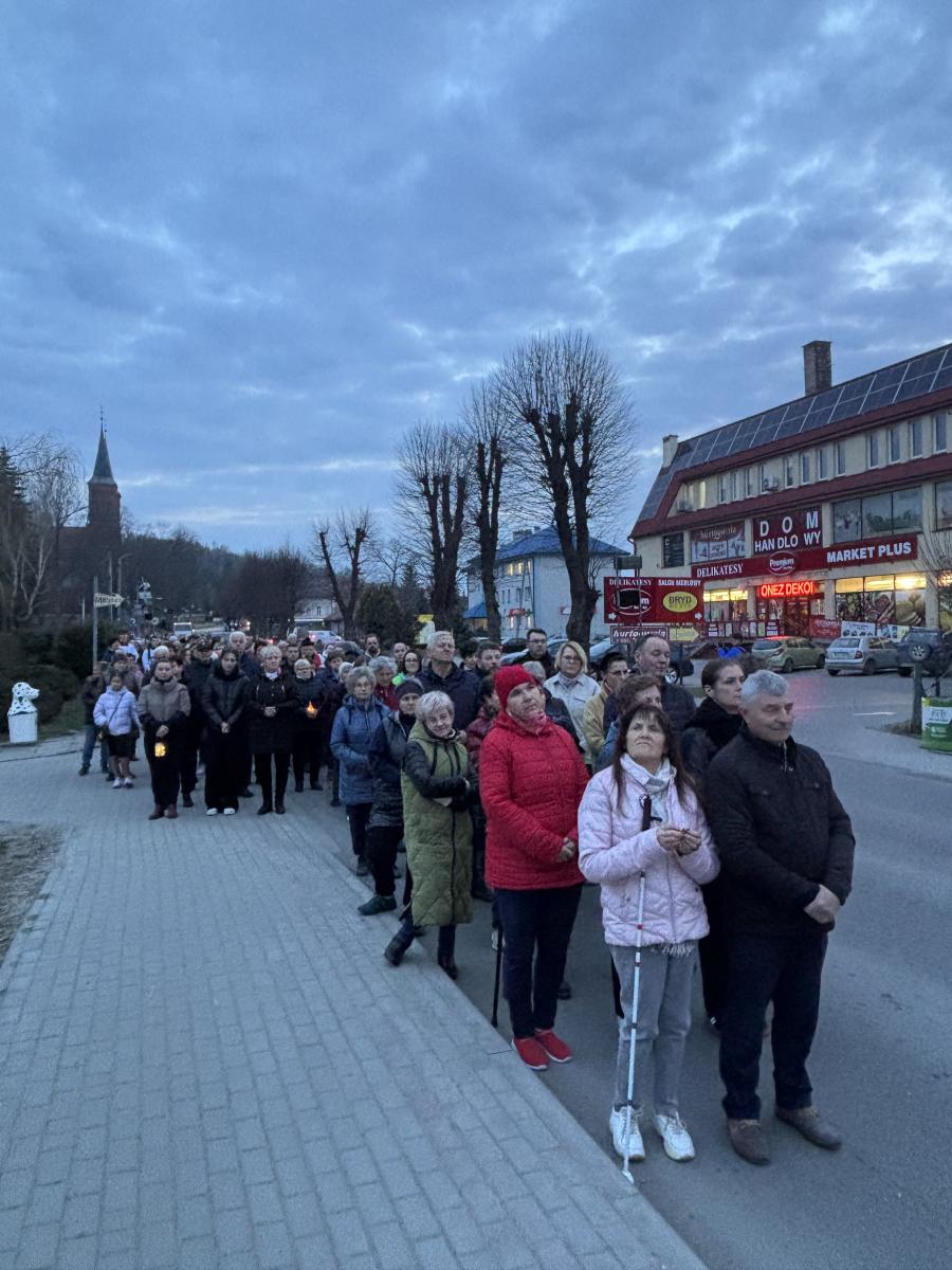 Następnie wyruszyliśmy ulicami naszej parafii, rozważając kolejne stacje Drogi Krzyżowej. Towarzyszyła nam modlitwa, skupienie oraz intencje, które każdy z nas niesie w swoim sercu – te wypowiedziane i te znane tylko Bogu.
